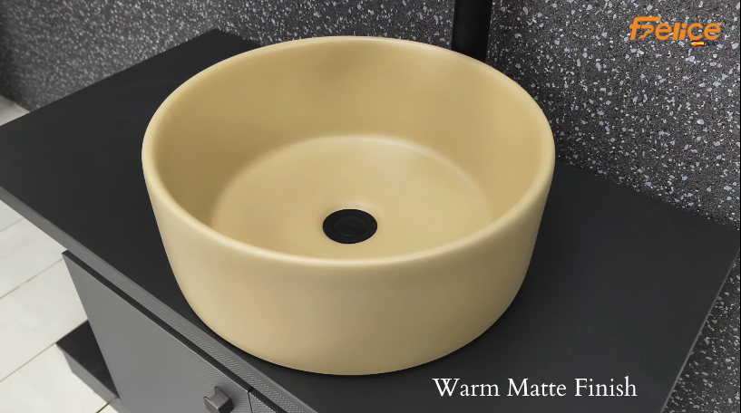 The warm matte finish offers a tactile, soothing experience. Unlike glossy textures, this surface feels grounded and natural. It doesn’t just look beautiful—it invites you to slow down, breathe, and enjoy each moment at the sink. It’s easy to maintain and designed for lasting comfort and beauty.